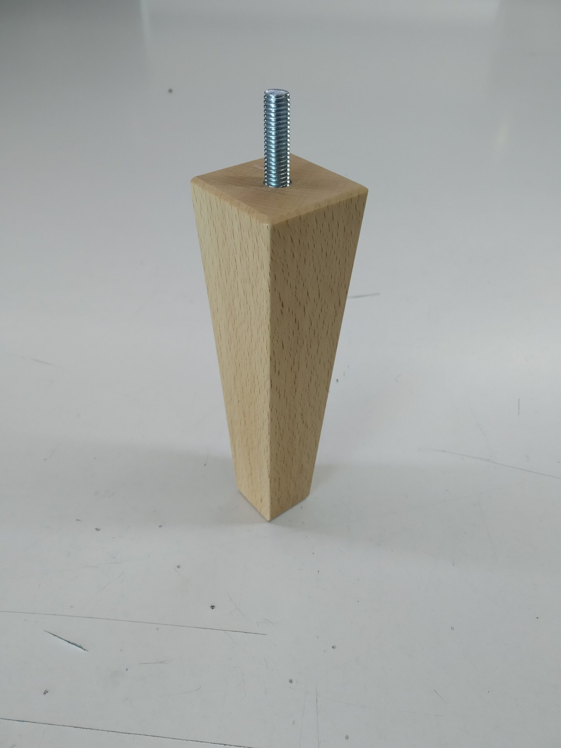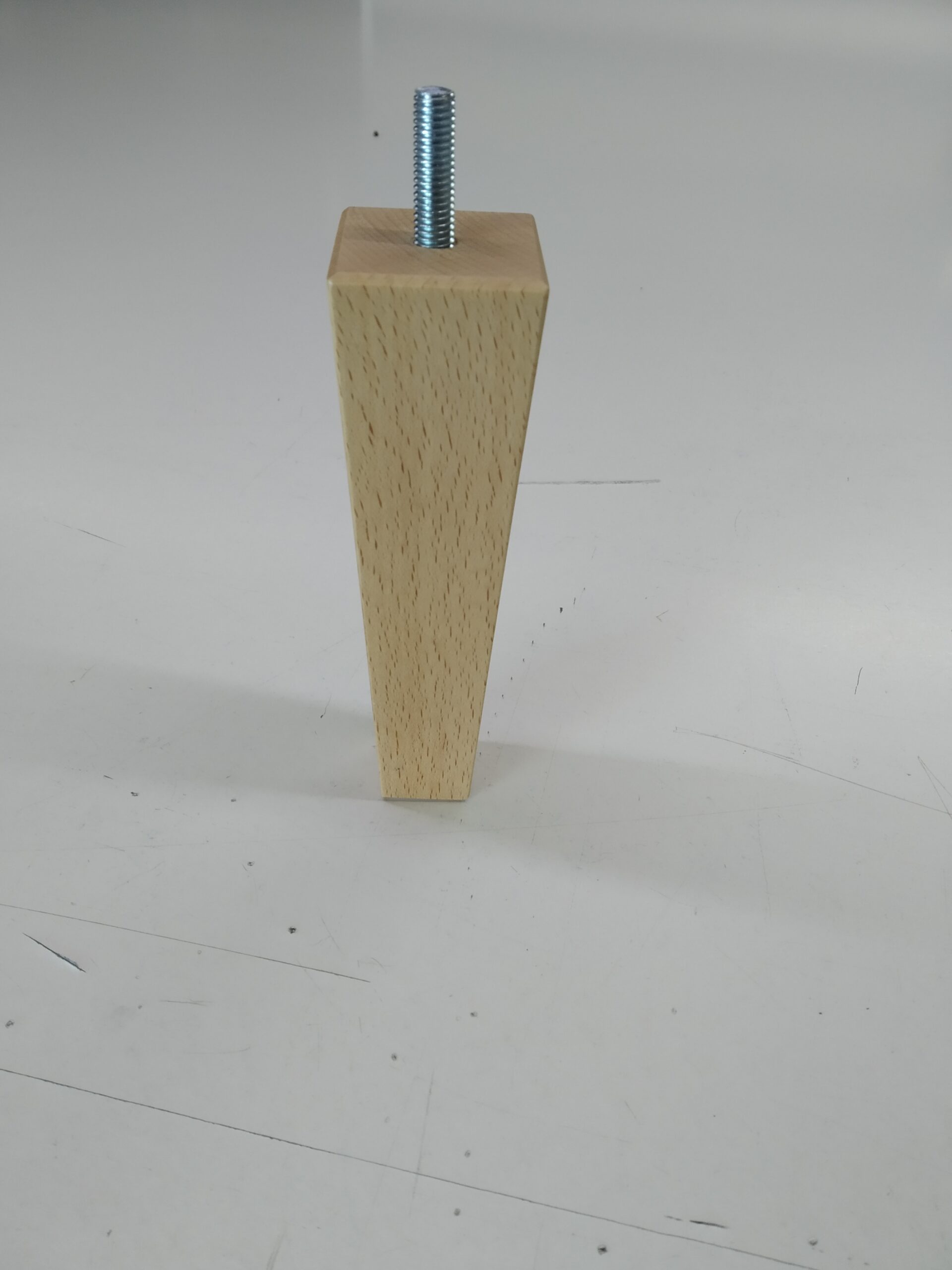 Pé Quadrado em Cone 15cm. Pé em Pinho Natural. Com rosca M8.